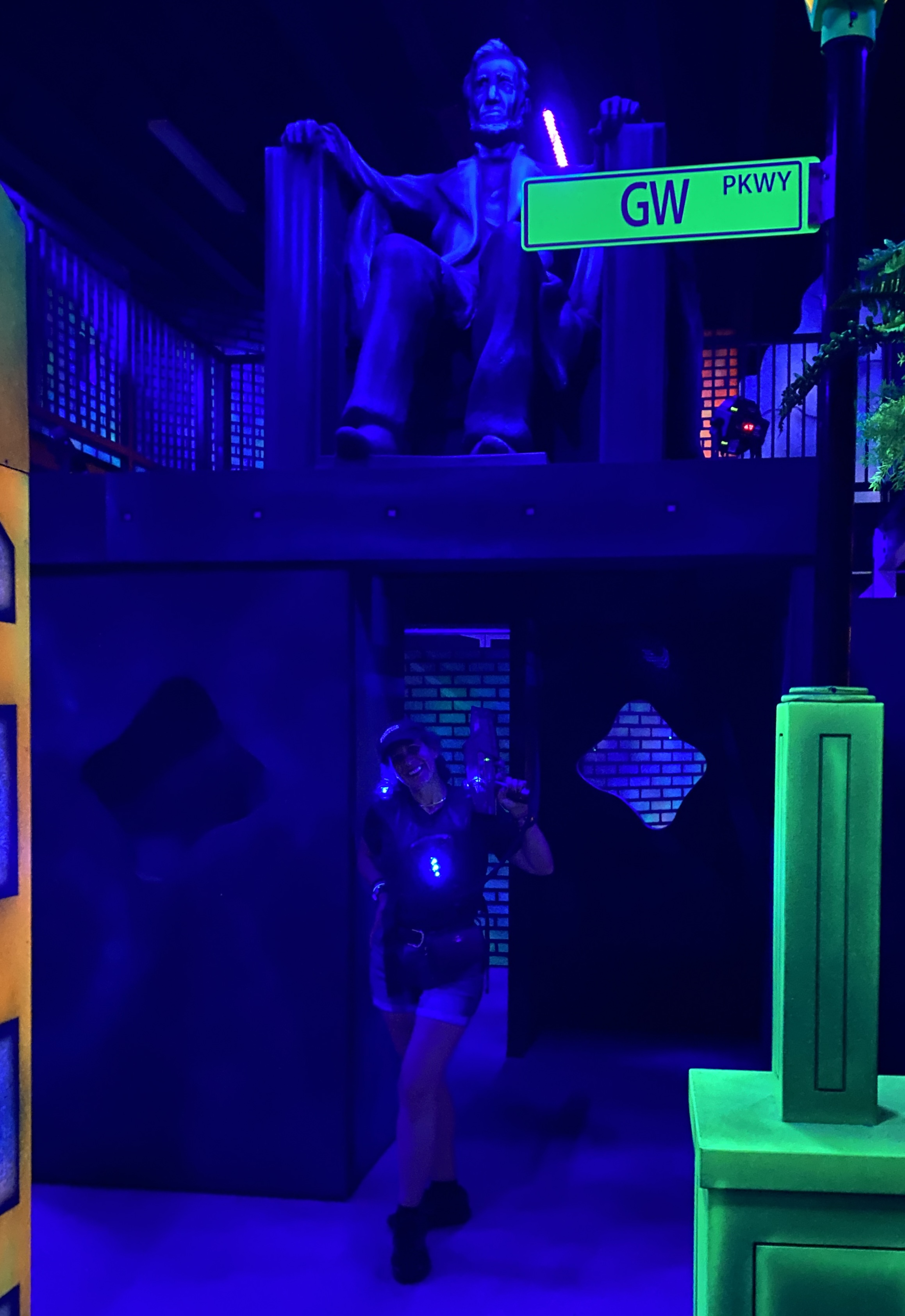 Their coworker wanted to make sure we had the same info about the arena that the staff players had, and she told us to steer clear of the Abraham Lincoln sculpture that would target you if you got too close.